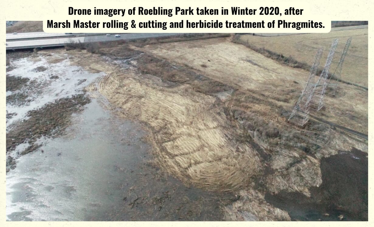John A. Roebling Memorial Park, part of the Abbott Marshlands, an ecologically rich freshwater tidal ecosystem that contains valuable habitat for many rare species, experienced a significant amount of loss and degradation, partially due to the introduction of Phragmites. In areas where Phragmites had overtaken native wetland communities, our team developed and executed an invasive species management plan tailored to the park’s unique hydrology and habitat types. Seasonal mowing in the winter and early spring with the Marsh Master® and targeted herbicide applications helped suppress invasive growth and enabled the rebound of native species, including Wild rice (Zizania aquatica), a culturally and ecologically significant plant.
