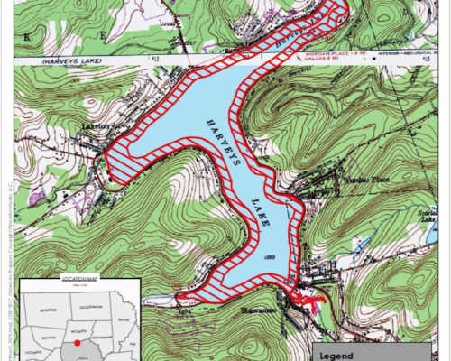Harveys Lake is the largest natural lake, by volume, within the Commonwealth of Pennsylvania. As a result of an increase in the frequency and magnitude of algal blooms, as well as elevated counts of fecal coliform, the Borough of Harveys Lake and the Harveys Lake Environmental Advisory Council (EAC) was awarded funding in 1993 to conduct a USEPA Phase I Diagnostic / Feasibility Study on the lake. Princeton Hydro staff conducted the technical components of the study, including the development of the hydrologic and pollutant budgets and the long-term Management Plan. Following Phase I, a TMDL was instituted for total phosphorus. Princeton Hydro, in conjunction with PADEP and the Borough of Harveys Lake, have worked to bring the lake into compliance. The lake was recently removed from the impaired list.